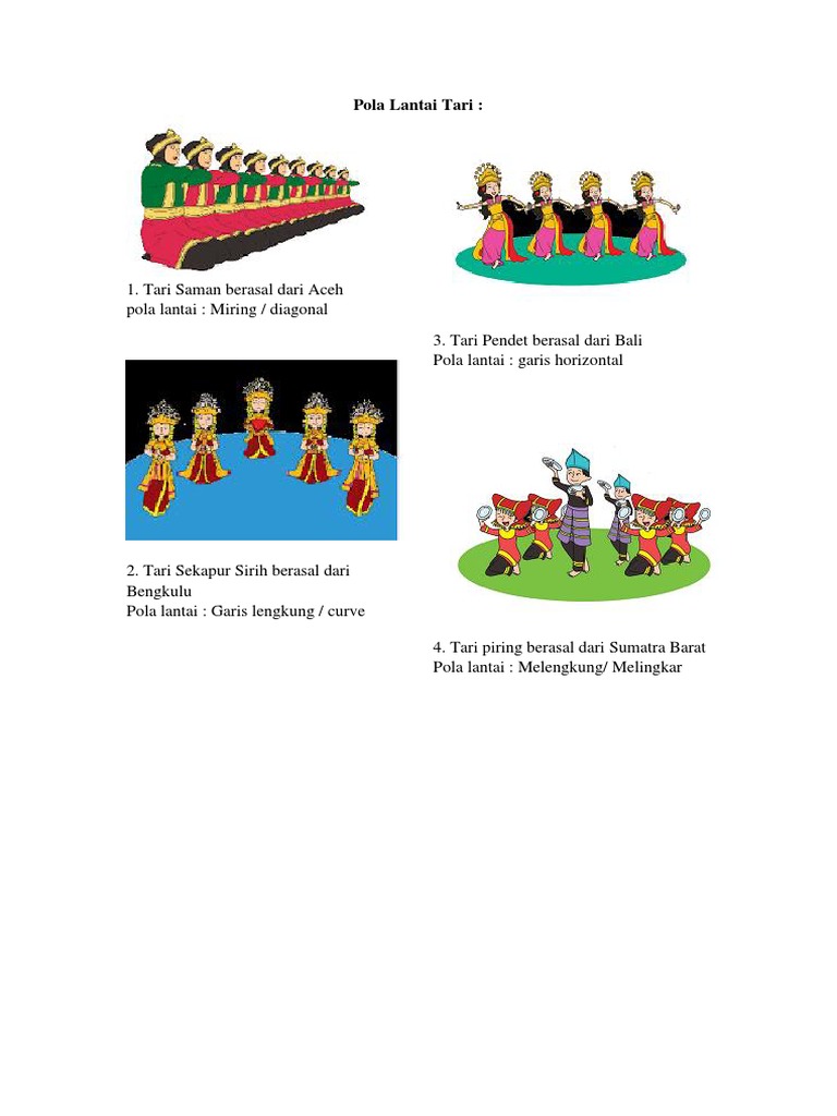 Macam-Macam Pola Lantai Tari Kreasi Daerah Halaman all ... from asset.kompas.com Makna dari setiap gerakan ini tak jauh dari filosofi. Filosofi pola ini yaitu sebagai lambing hubungan antara sesame manusia sebagai makhluk sosial yang saling membutuhkan satu sama lain. Pada tari saman, iringan menggunakan pujian terhadap sang. Pola lantai tari saman adalah pola garis lurus sejajar atau bersaf. Pelajari ragam gerakan tari saman dan penjelasannya. Pola lantai tari saman merupakan salah satu ciri yang tidak dimiliki oleh daerah lain. Pola ini konsisten dilakukan dari awal tarian hingga demikian ulasan dari kami tentang pola lantai tari saman yang banyak mengandung makna mendalam. Sejarah, makna, dan pola lantai tari.